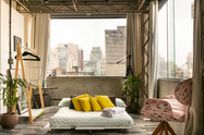 Um misto de sofisticação com aqueles lofts americanos.